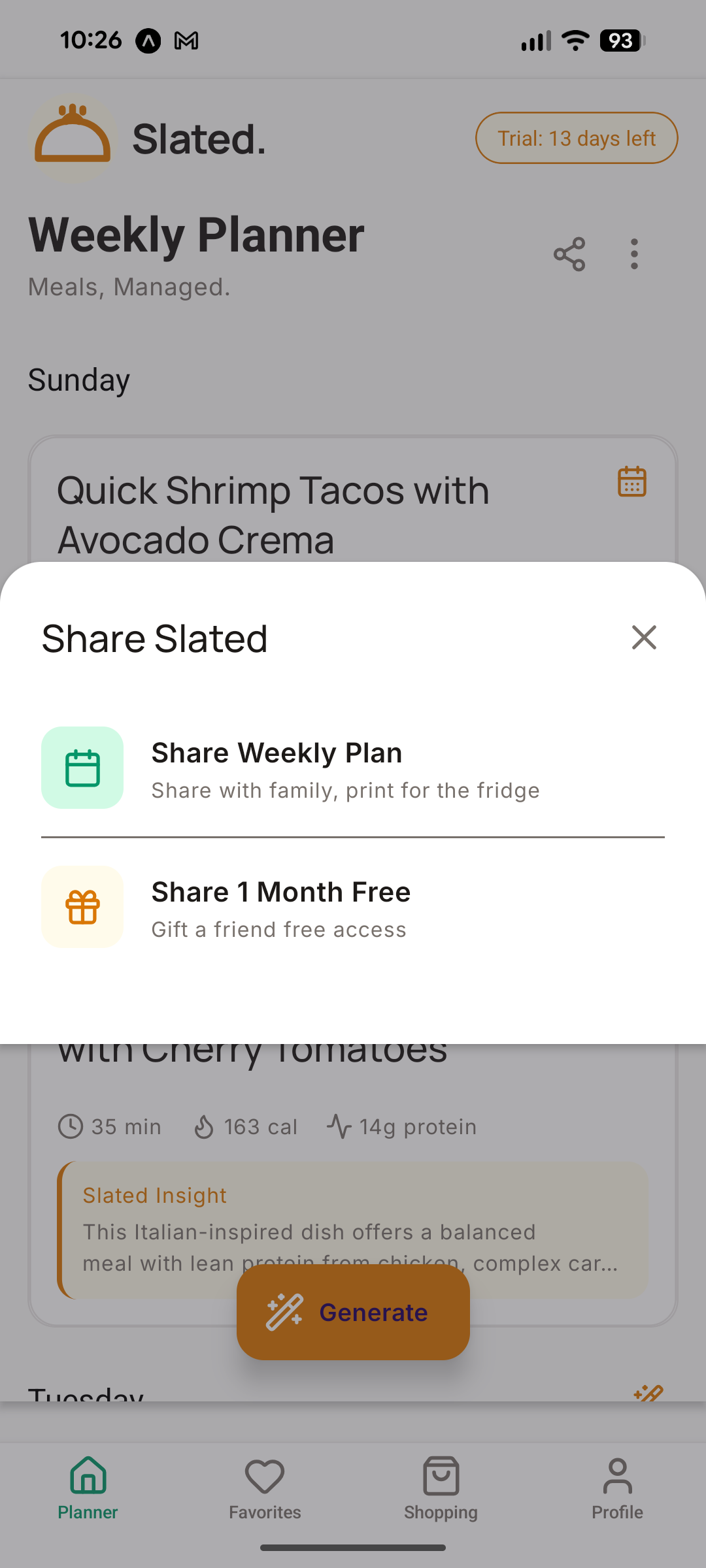 Slated automatically creates your weekly meal plan based on your preferences, schedule, and pantry.